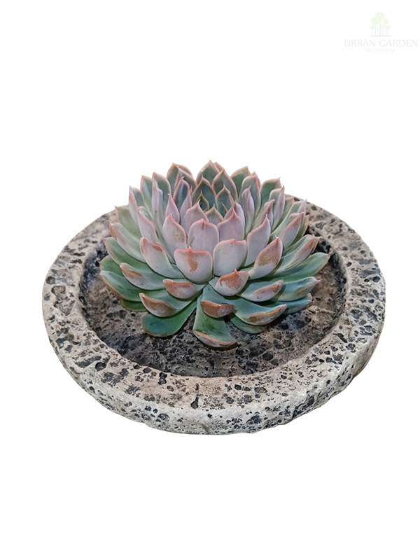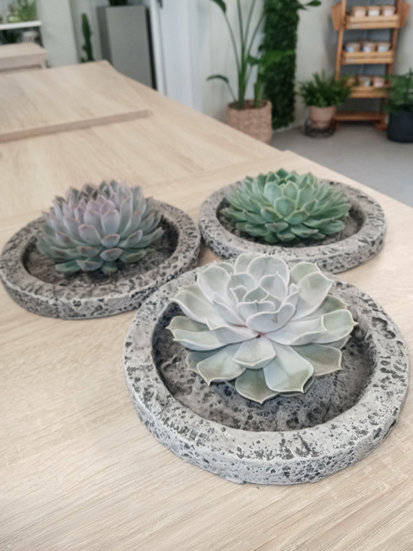 Aranžman je napravljen od pažljivo odabranih sukulenti, elegantna kombinacija u dekorativnoj posudi.