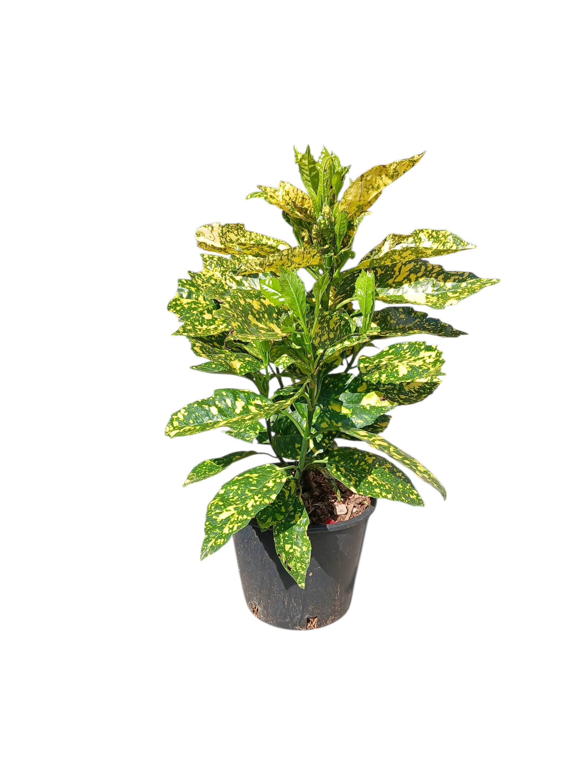 Aukuba je zimzeleni žbun sa kožastim, zelenim listovima koji su prošarani žutim tačkama, izgledaju kao isprskani bojom. Raste u visinu do 2m.