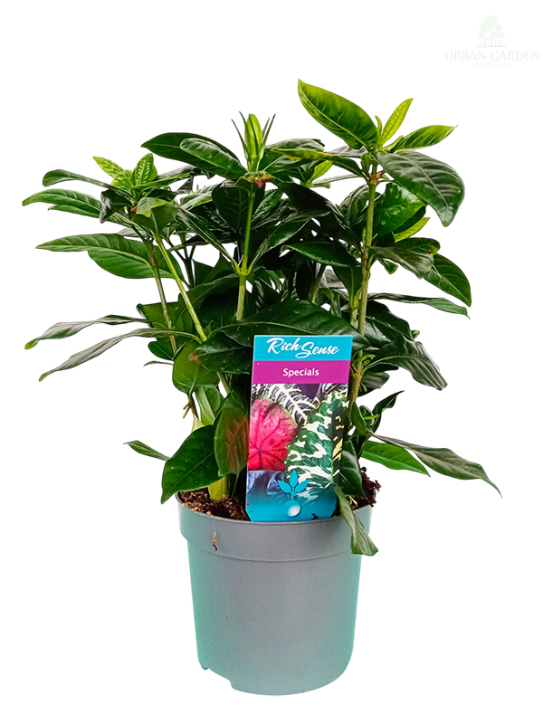 Gardenija je zimzelena, žbunasta ukrasna biljka poznata po sjajnim, tamnozelenim listovima i velikim, belim cvetovima intenzivnog i prijatnog mirisa. Cvetovi su najčešće puni ili polupuni i smatraju se jednim od najmirisnijih među sobnim i baštenskim biljkama. Biljka ima kompaktan, grmolik rast i visoku dekorativnu vrednost.