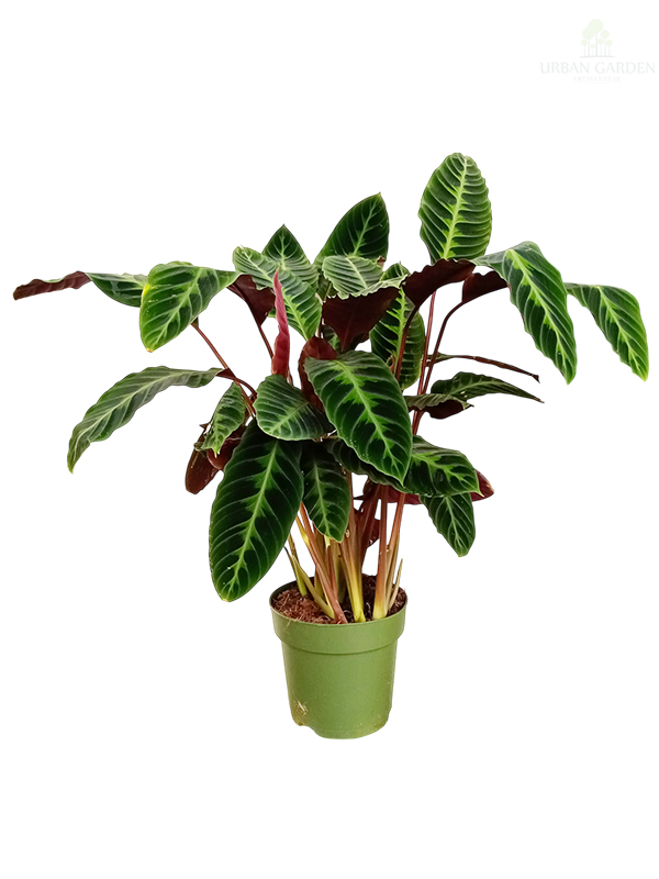 Kalatea je izuzetno dekorativna vrsta poreklom iz Brazila. Listovi su jajasti, sa interesantnom šarom. Lice je tamno zeleno sa belim prugama, dok je naličje bordo boje.