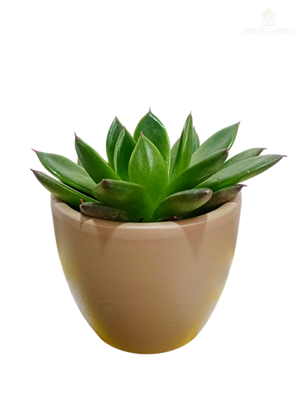 Sukulent u dekorativnoj keramičkoj saksiji.